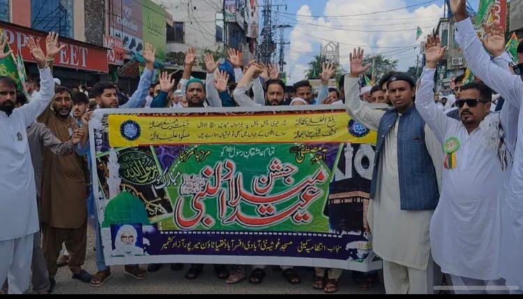 دنیا بھر کی طرح میرپور آزاد کشمیر میں بھی جشن عید میلاد النبی نہایت عقیدت و اخترام سے منایا گیا اس سلسلے میں ضلع میں مرکزی جامع مسجد سے مرکزی جلوس برآمد ہوا اور اپنے مقررہ راستوں سے ہوتا ہوا میرپور کے تاریخی چوک چوک شہیدہ پہنچا جہاں پر ایک تقریب منعقد ہوئ جس میں تلاوت قرآن پاک کے بعد نعت پیش کی گئ۔ آخر میں ڈپٹی کمشنر میرپور یاسر ریاض کا کہنا تھا کہ ہم ہر سال کی طرح اس سال بھی ہم نے جشن عید میلاد النبی نہایت عقیدت و اخترام کے ساتھ منایا ہے۔